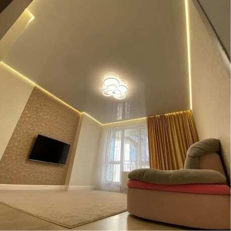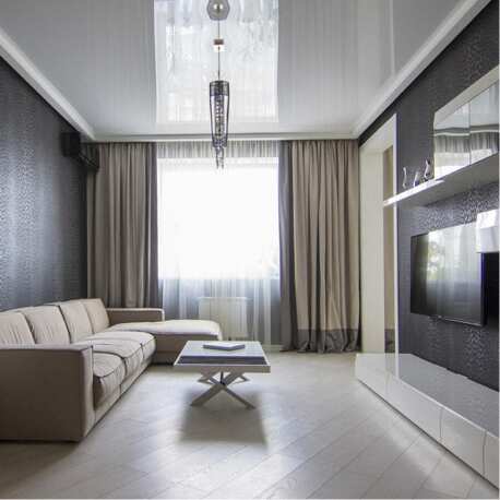 Глянцевый натяжной потолок − модное решение для оформления потолочной зоны в жилом, офисном или торгово-развлекательном заведении.